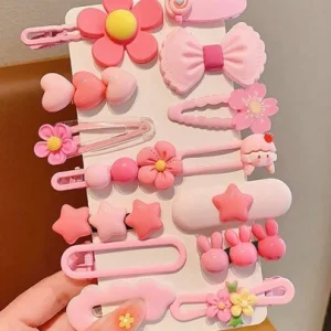 14 Piezas/set Horquillas Para El Cabello Con Corazon De Flor Rosa Y Lazo Para Niñas, Lindo Pasador De Princesa, Garras Para Flequillo, Diademas Y Accesorios Para El Cabello