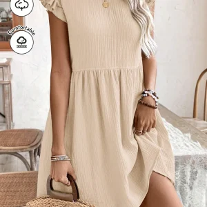Camiseta de verano holgada de talla grande con cuello redondo, mangas farol y plisado en la parte superior, de punto jacquard y corte regular, en estilo casual