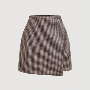 K1639 – Falda acampanada tipo A de pana lisa en color marrón