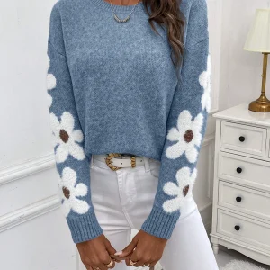 ST409 – Suéter Casual De Mujer Con Estampado Floral