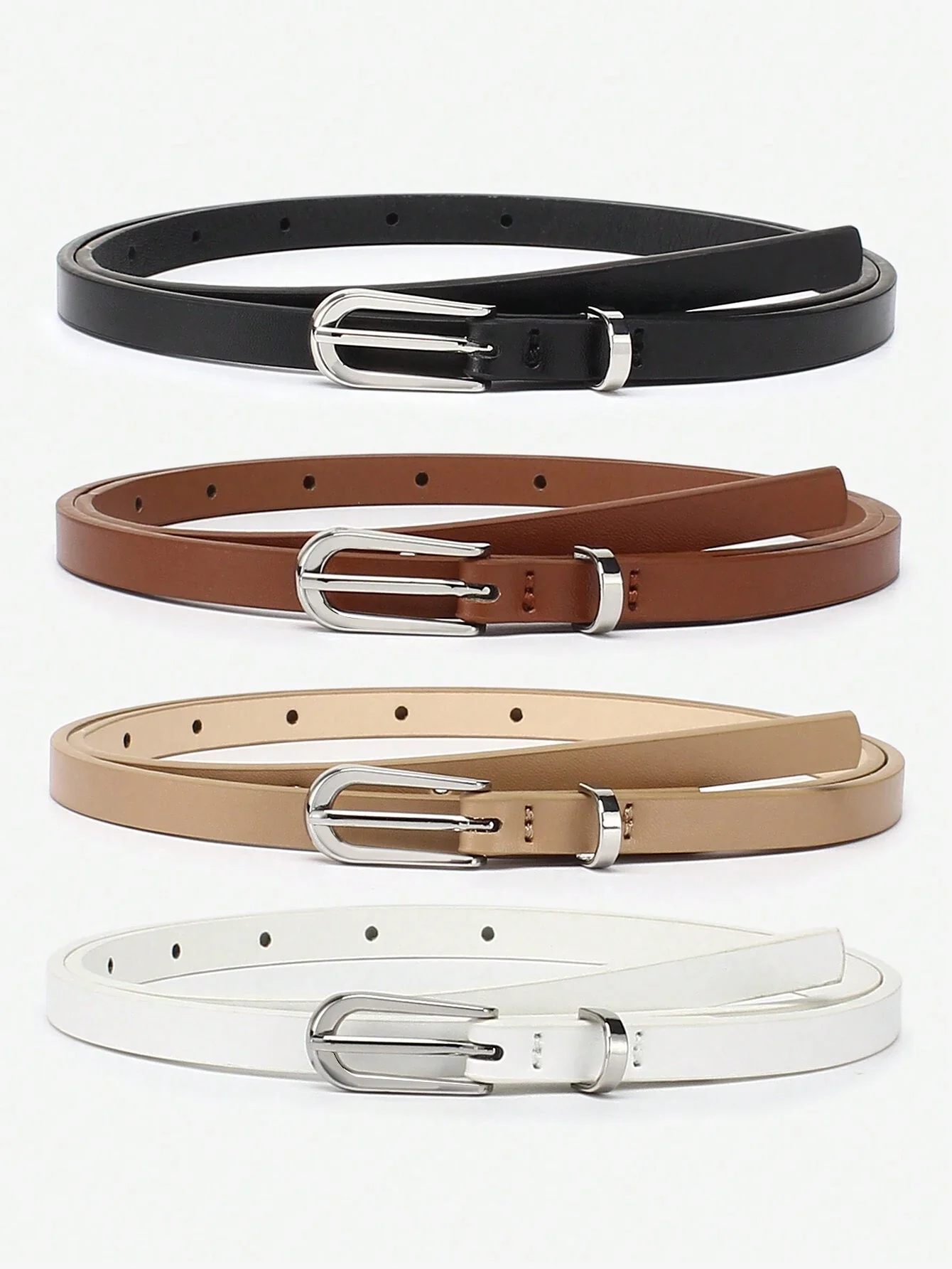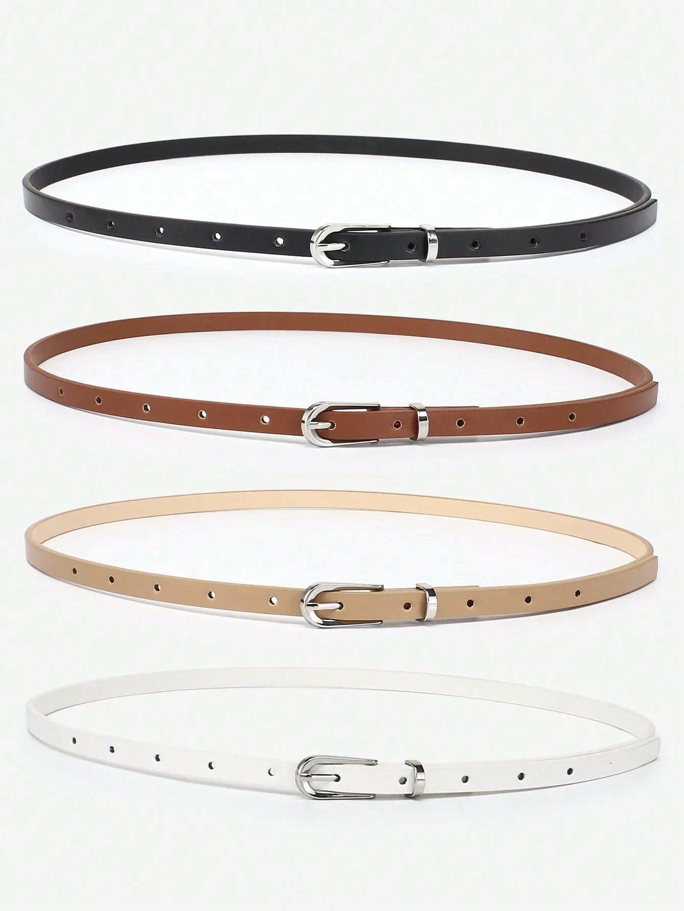 4 piezas Cinturón de mujer clásico de piel sintética PU de unicolor, cinturón delgado simple con hebilla cuadrada para pantalones vaqueros, verano, escuela, otoño, Halloweeno