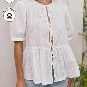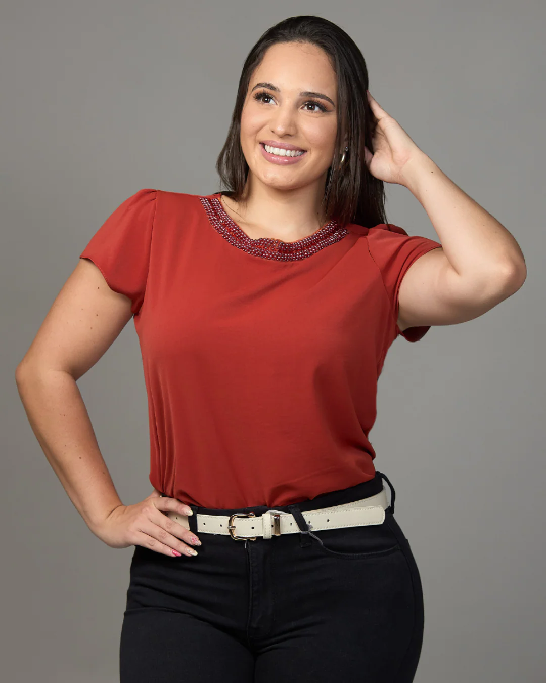 BLUSA TOGETHER TERRACOTA CON PERLAS EN EL CUELLO 100% POLIESTER