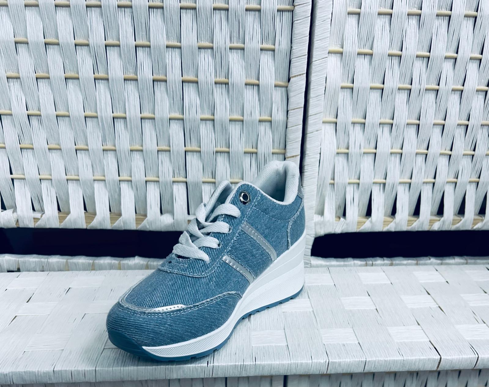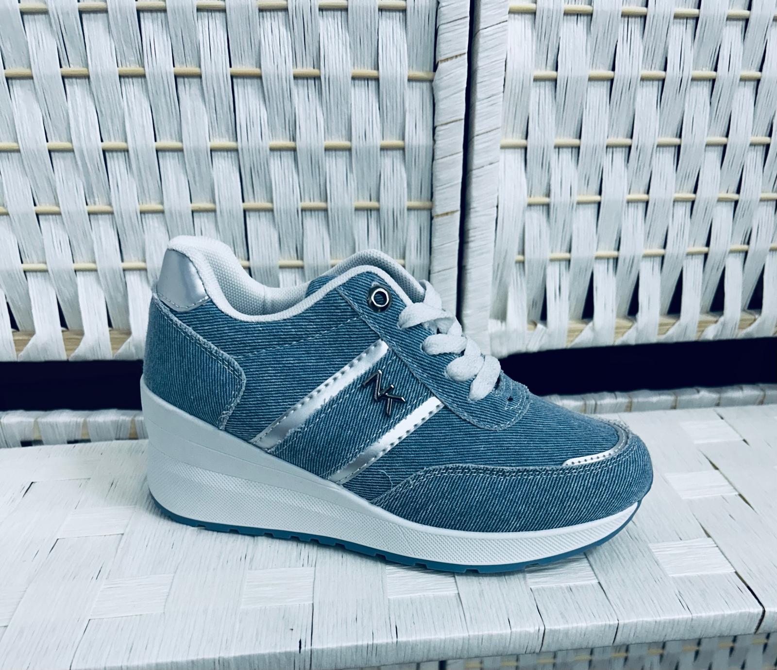 calzado deportivo mujer nko75 color azul llevan cuña los materiales so tela y polipiel con suela anti deslizante calzan bien de número