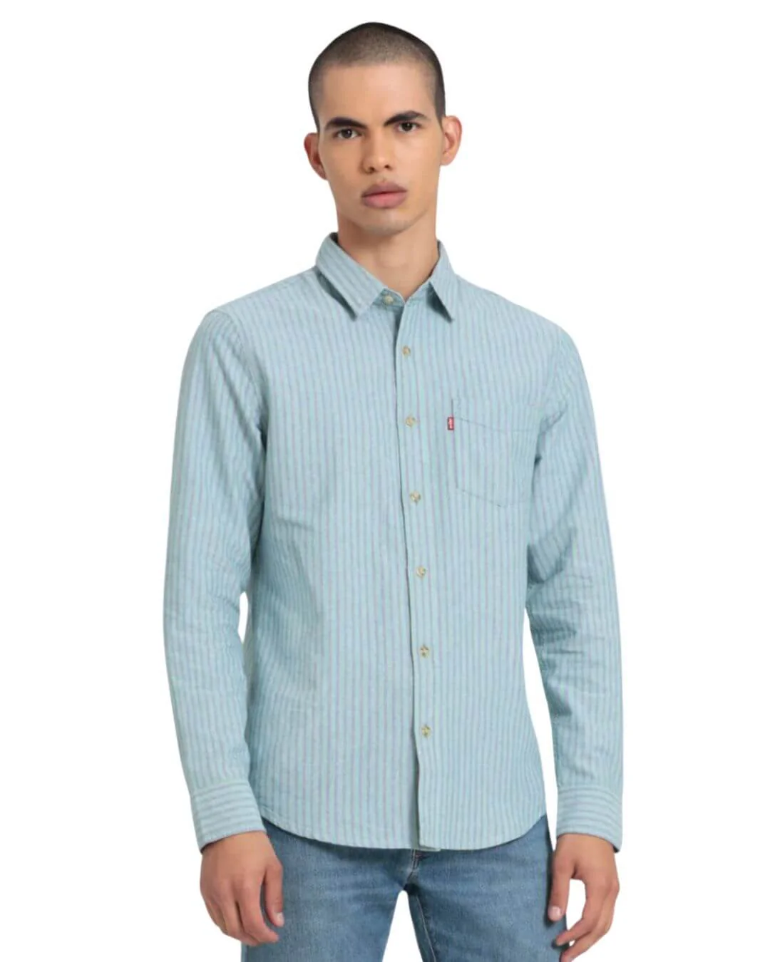 CAMISA LEVIS DE HOMBRE VERDE AGUA CON RAYAS MANGA LARGA