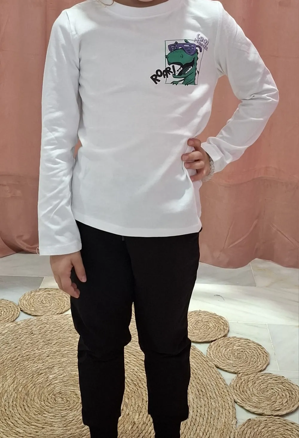 Esta camiseta de manga larga, con un divertido diseño de dinosaurio, es perfecta para niños de 3 a 9 años. Suave, cómoda y llena de personalidad, es ideal para los pequeños aventureros que aman los dinosaurios. ¡Estilo y diversión!