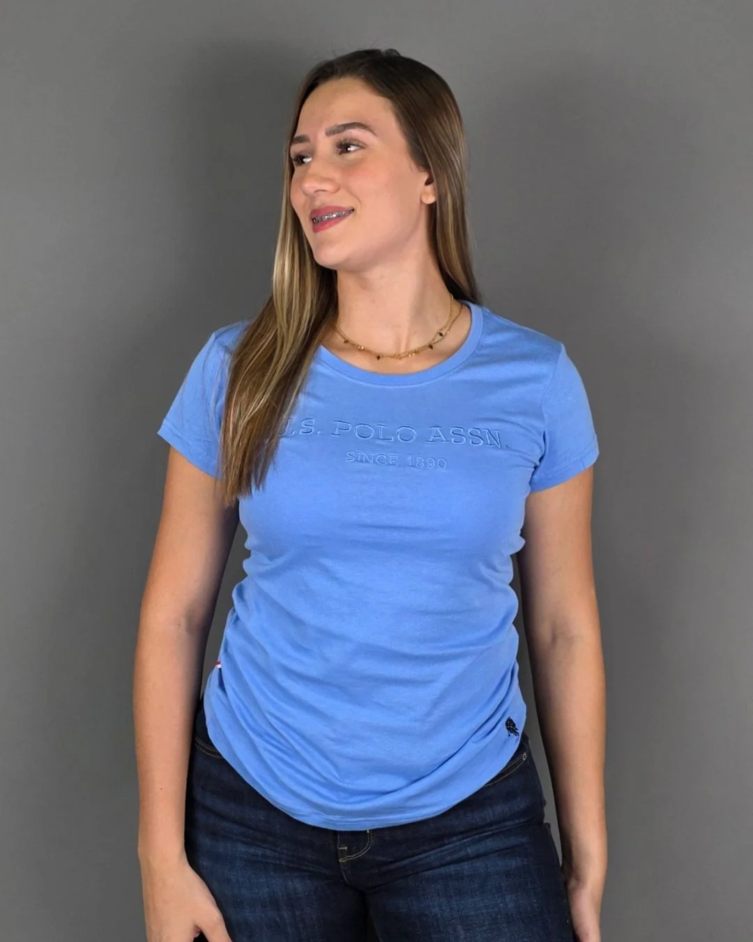 CAMISETA U.S. POLO ASSN CELESTE BORDADA PARA DAMA 100% ALGODÓN
