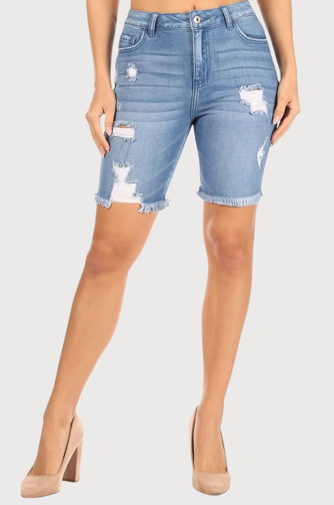 CHAVITO ENCORE MEZCLILLA AZUL MEDIO ROTO PARA DAMA 53% ALGODÓN, 45% RAYON, 2% ELASTANO.