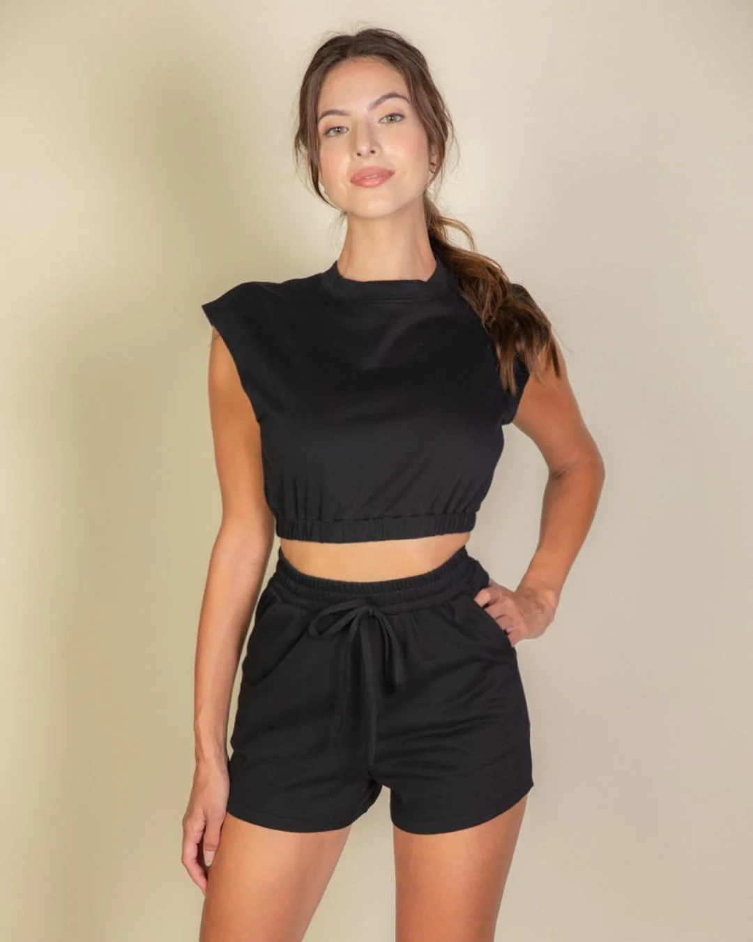 CONJUNTO LOS ÁNGELES CORTO NEGRO 63%ALGODÓN 37%POLIÉSTER