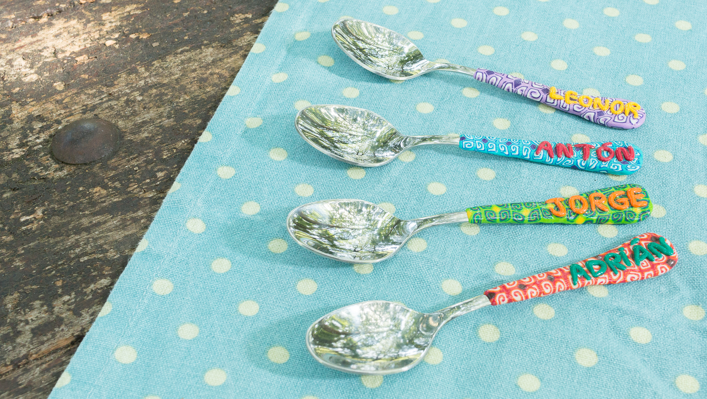 Estas cucharas tan alegres tienen el mango hecho a mano, de forma artesanal, como todos los productos que vendo en la tienda.