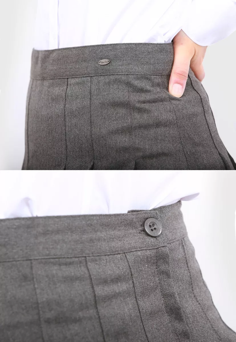 Falda gris fabricada con una mezcla perfecta de materiales de alta resistencia.