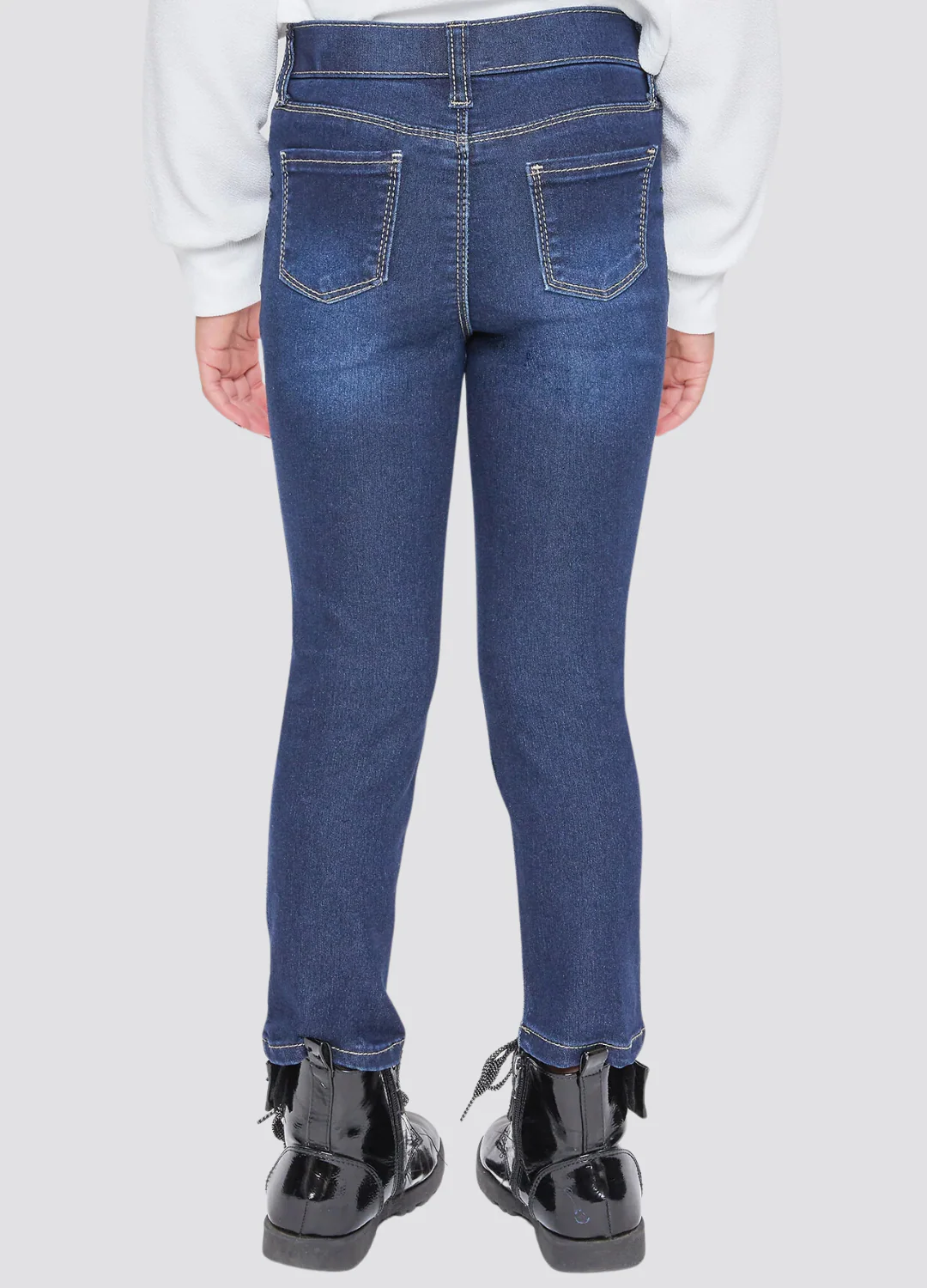 JEANS YMI AZUL OSCURO PARA NIÑA, 67% ALGODÓN, 32% POLIESTER, 1% ELASTANO