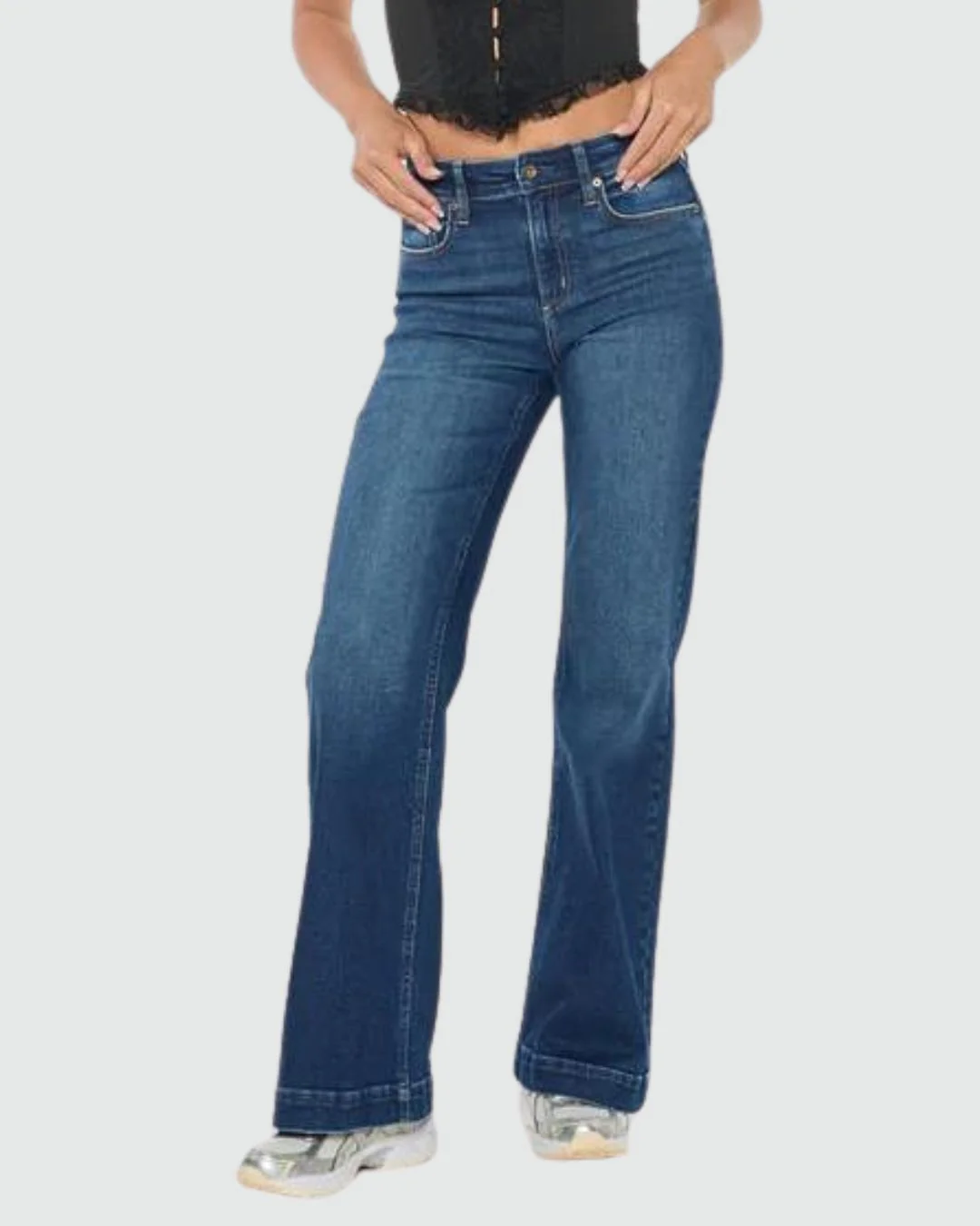 JEANS ENJEAN AZUL OSCURO DE MUJER WIDE LEG 73%ALGODÓN 18%POLIÉSTER 7%RAYÓN 2%ELASTANO