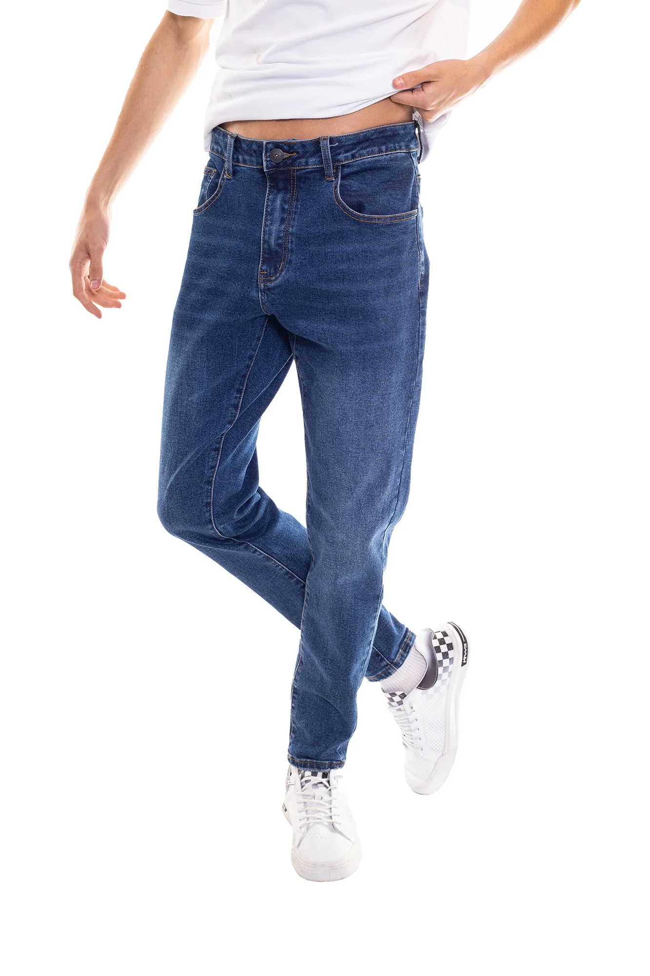Jeans Skinny con tiro medio, tipo de cierre con cremallera y botón, confeccionado con tejido ligeramente elástico.