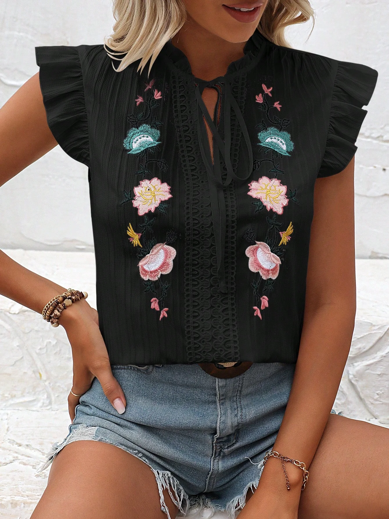 Detalles : Volante, Bordado, Volante fruncido