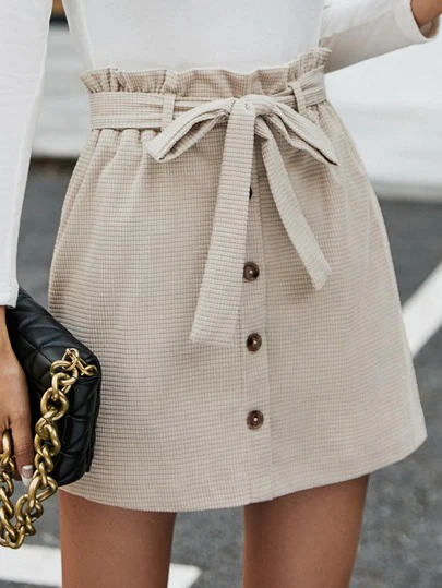 Detalles: Cinturón, Botón delantero, Cintura con volante,