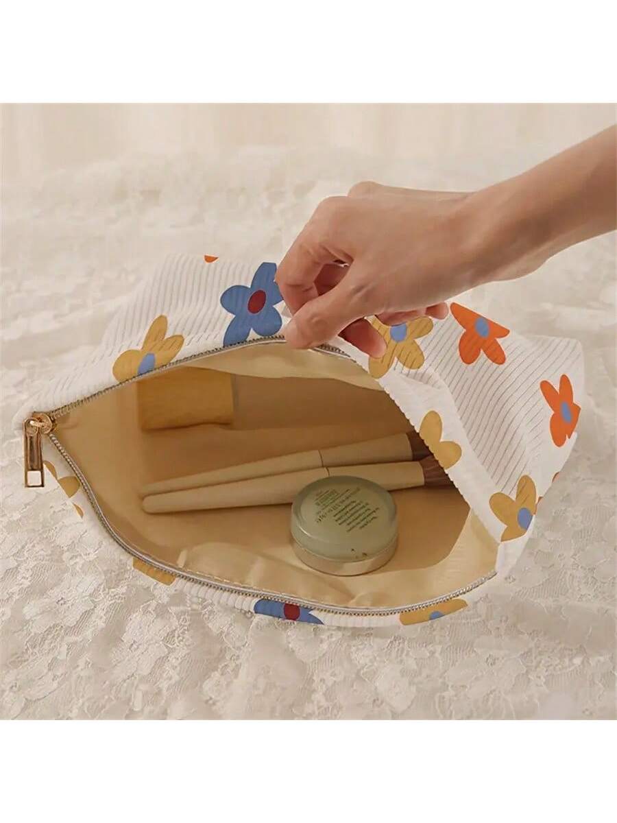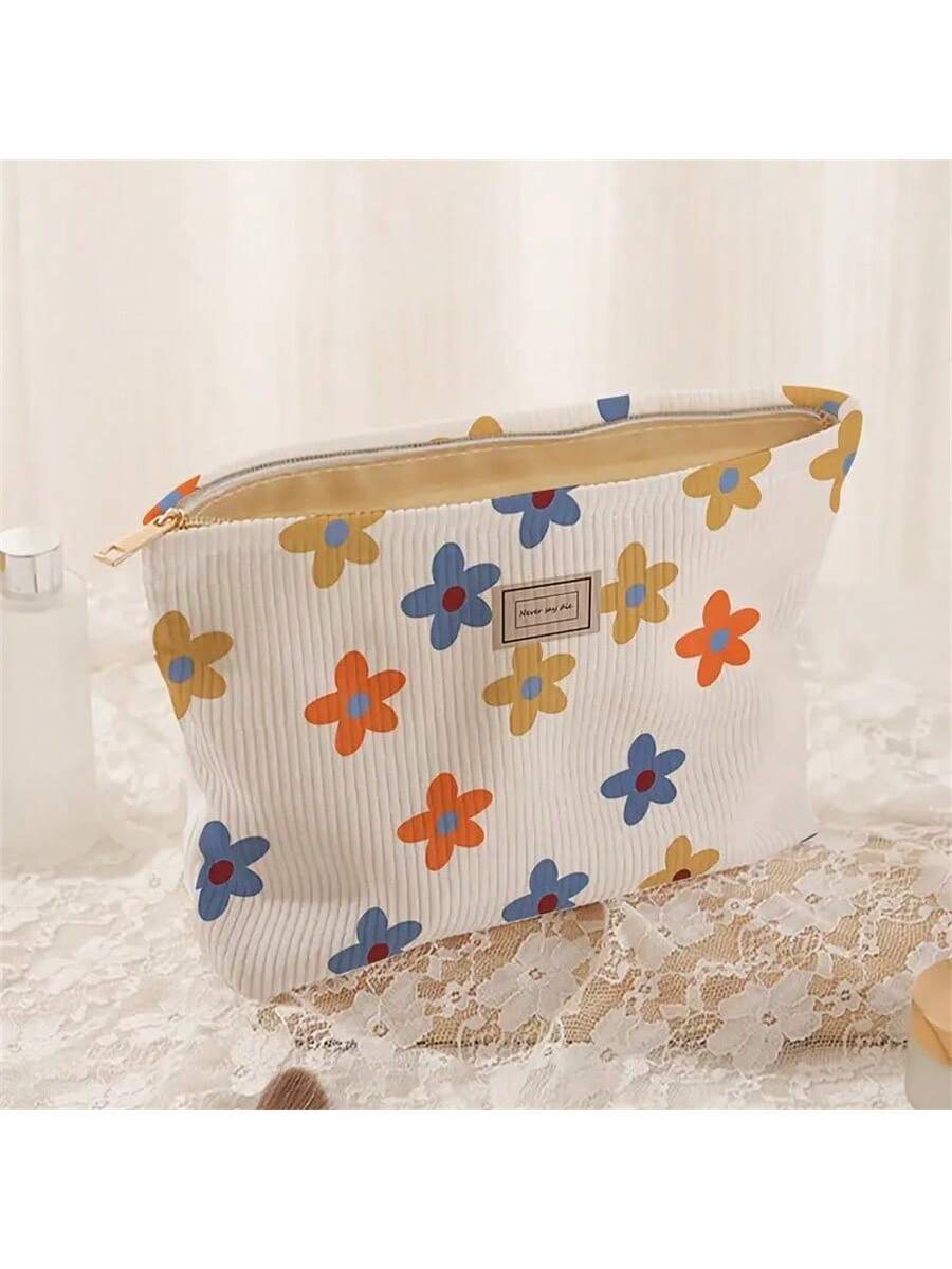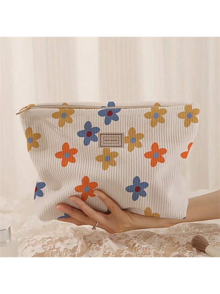 M0005 Bolsa de maquillaje de pana con patrón de lazos, bolsa de almacenamiento de cosméticos con cremallera y peso ligero, organizador versátil de artículos de tocador en estilo dulce, regalo para niñas, mujeres y amigas.