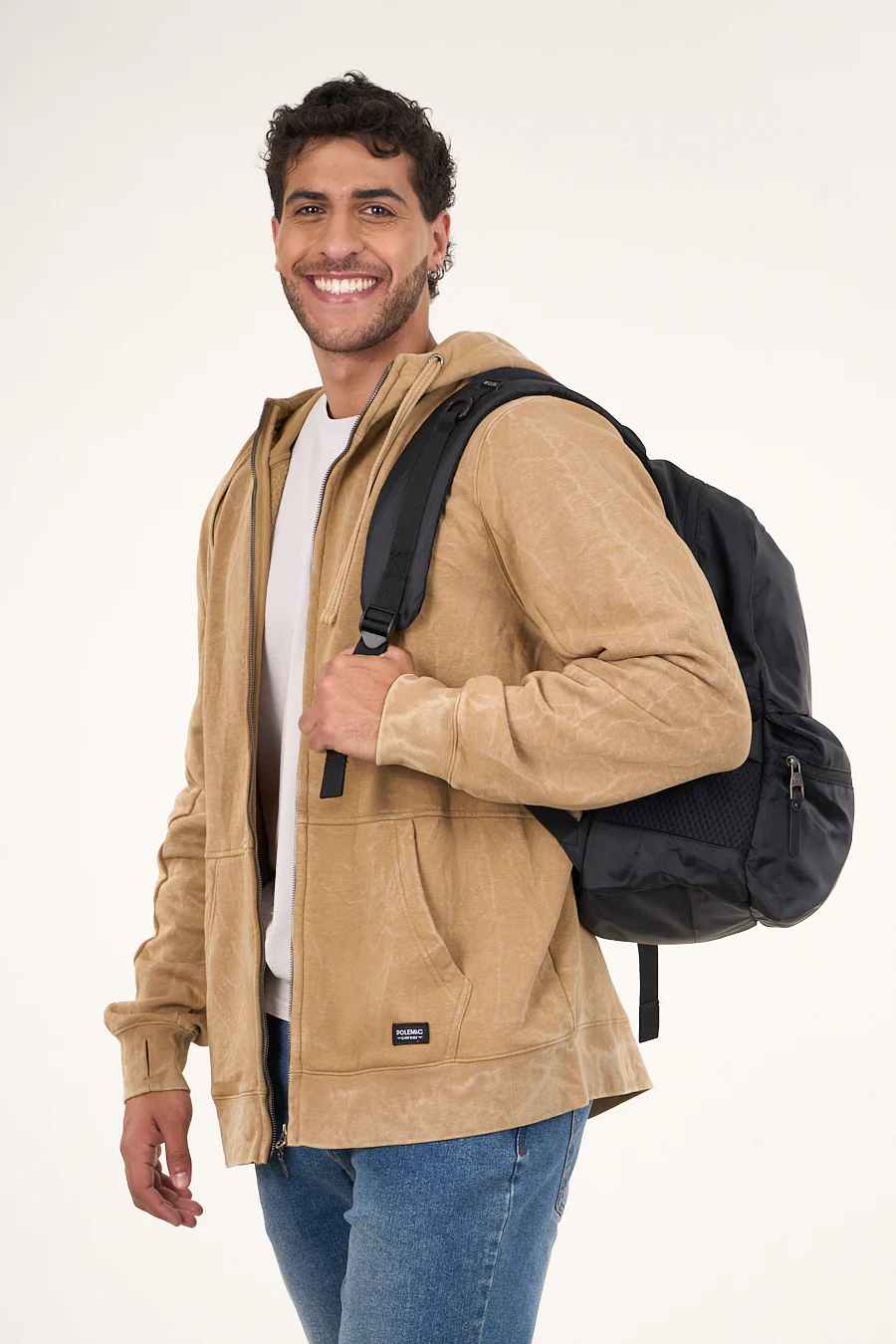 Poleron hombre con cierre, capucha y tela procesada ideal para disfrutar en la ciudad con un estilo slow fashion. Fabricado con materiales de alta calidad y un enfoque en la durabilidad, esta poleron se convierte en tu compañero ideal para cada día.