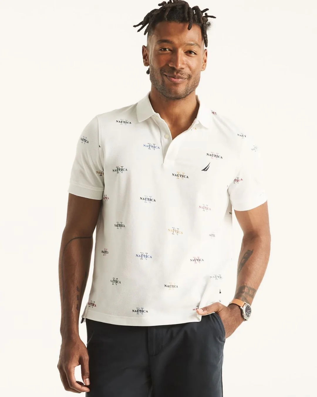 POLO NAUTICA DE CABALLERO BLANCA ESTAMPADA 60% ALGODÓN 40% POLIÉSTER