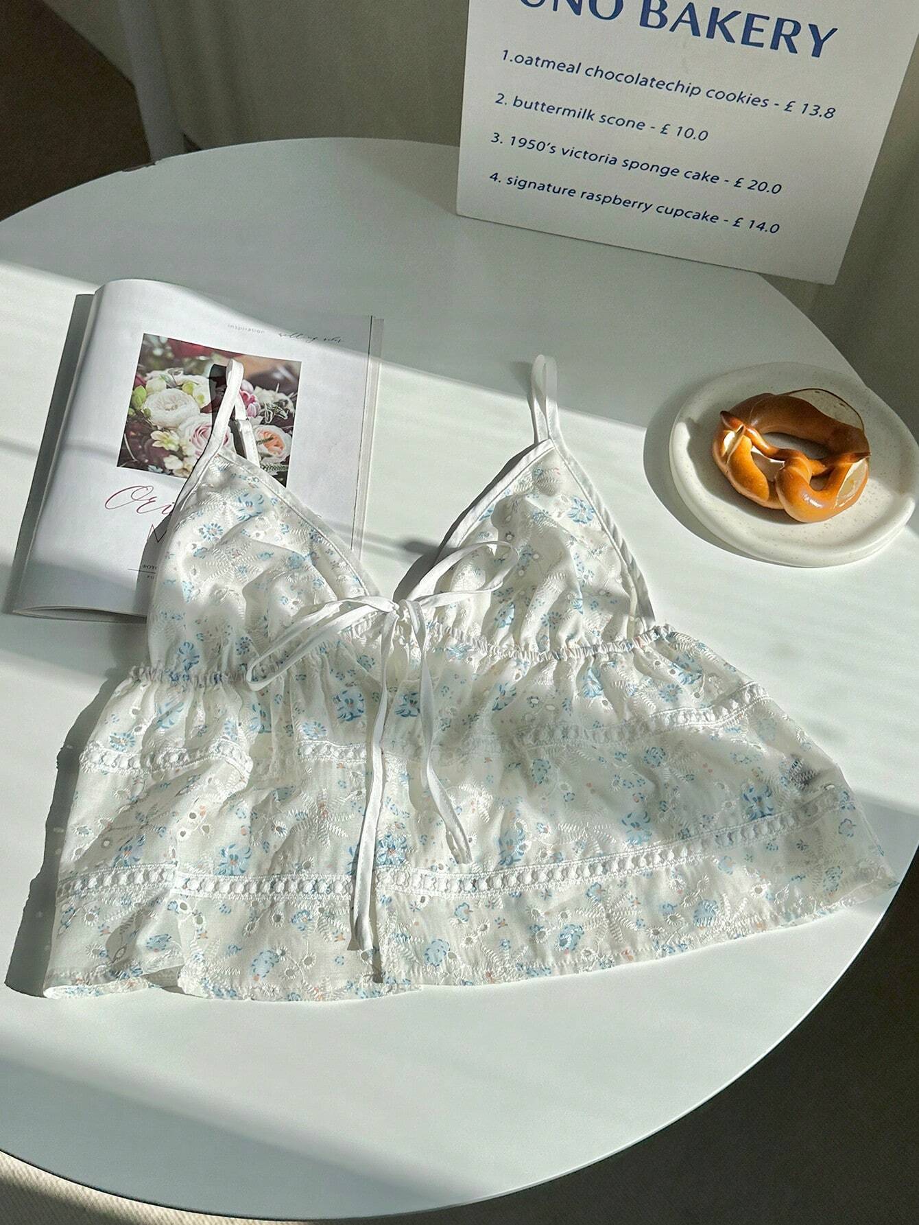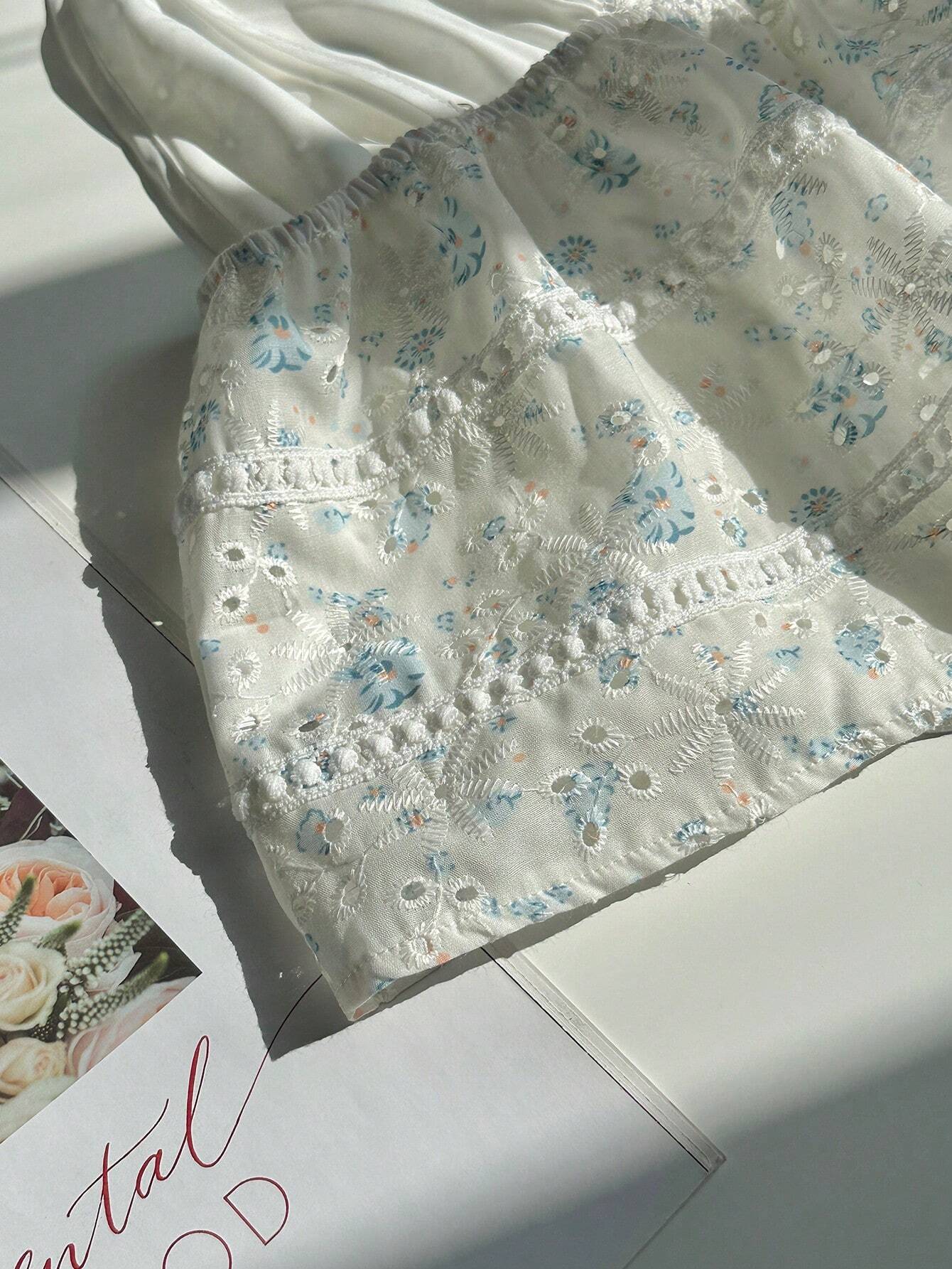 Detalles : Volante, Bajo con volante, Bordado de ojal