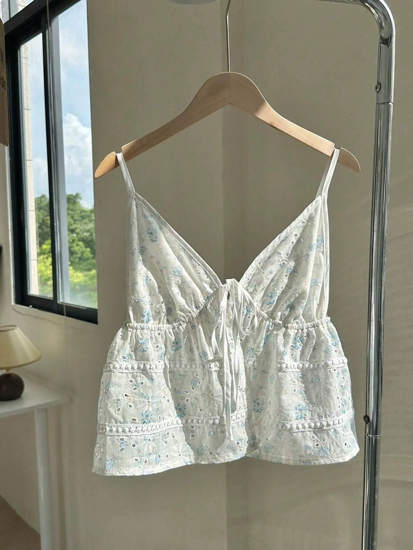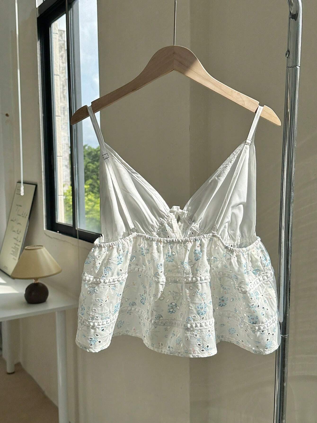 Detalles : Volante, Bajo con volante, Bordado de ojal