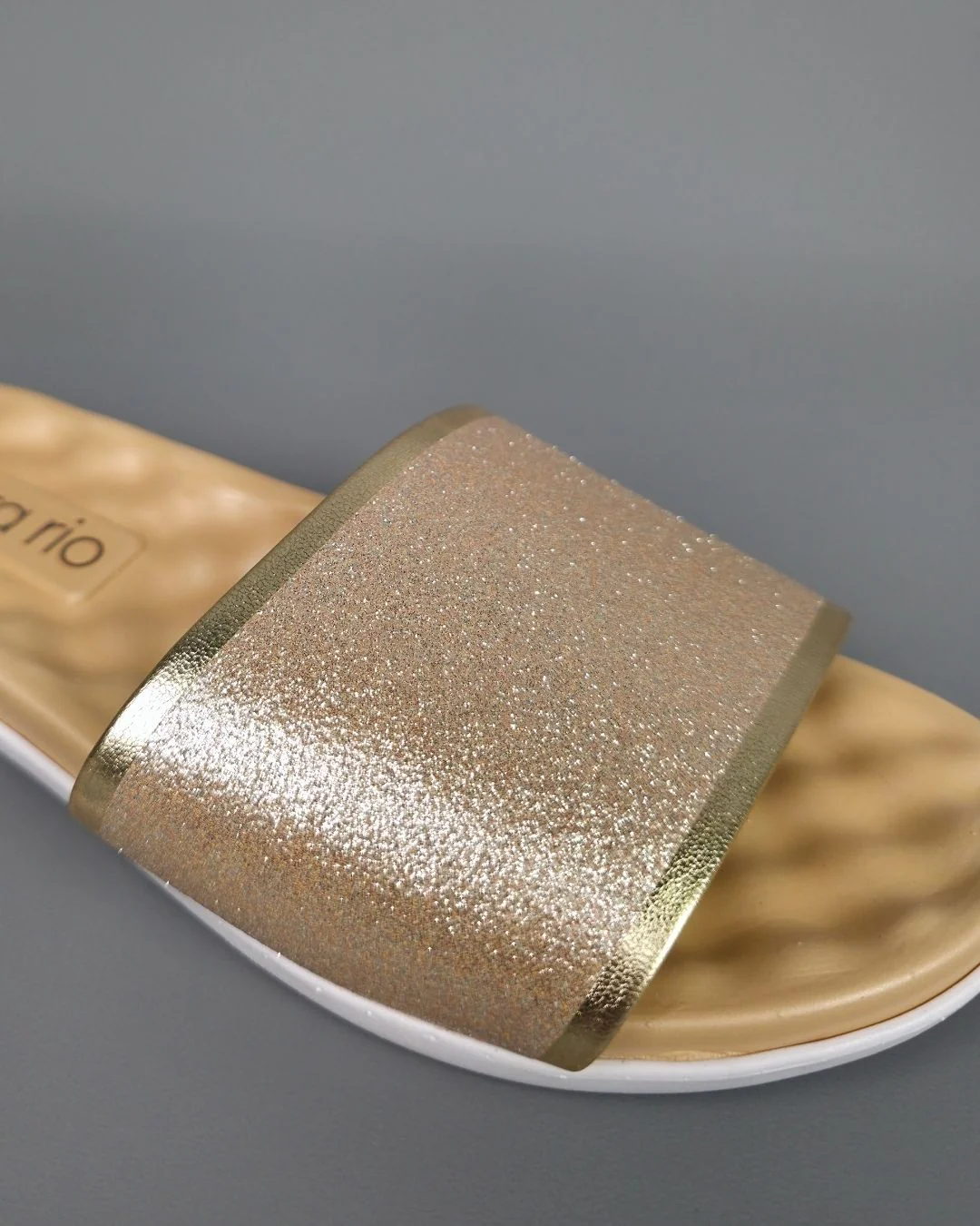 SANDALIA BEIRA RIO FLAT CON ESCARCHA DORADA PARA DAMA