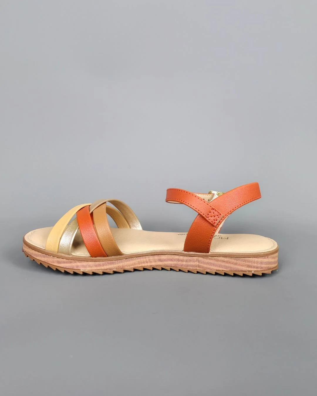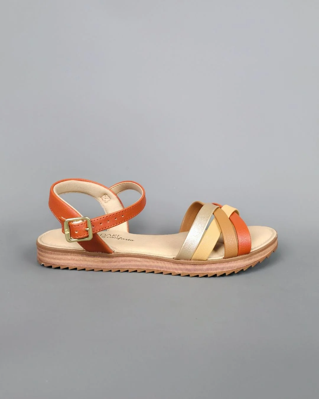 SANDALIA MODARE NARANJA DE TIRAS CAMEL-BEIGE-DORADO CON CIERRE DE HEBILLA PARA DAMA