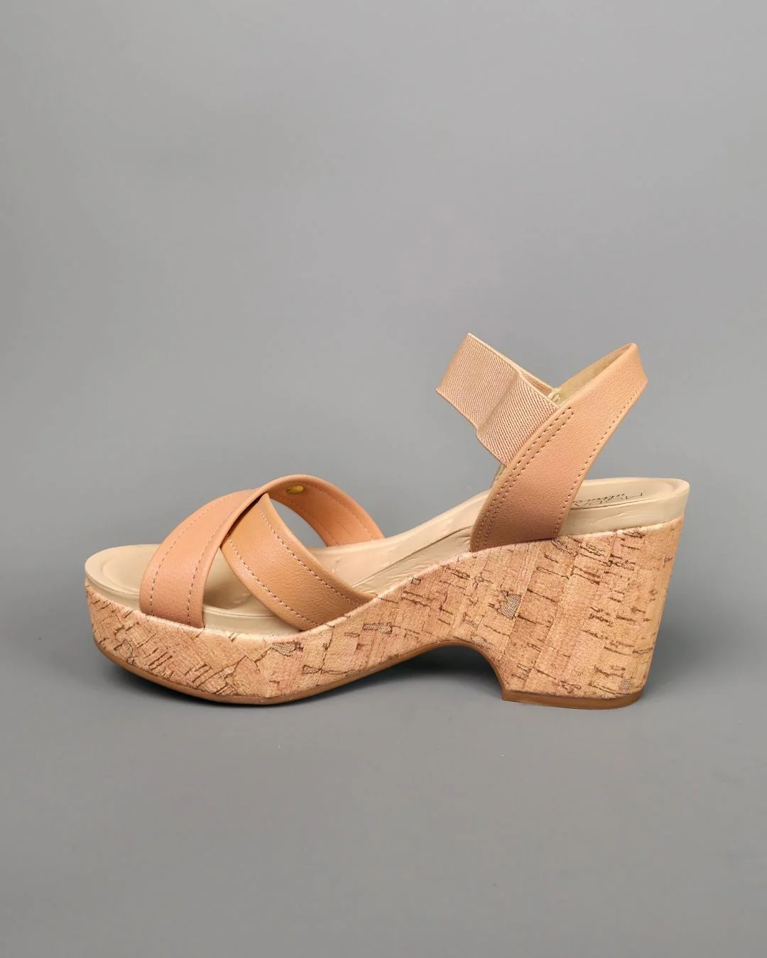 SANDALIA MODARE NUDE DE PLATAFORMA CON ELASTICO PARA DAMA
