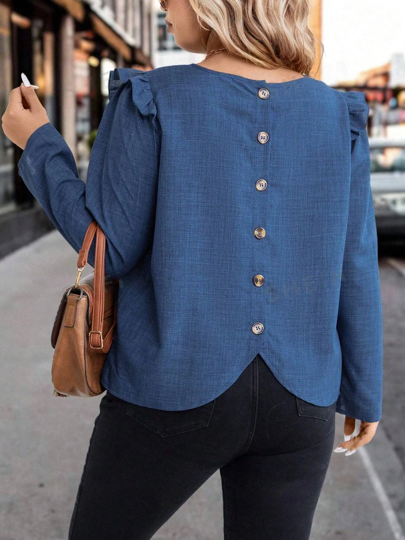 ST09 Blusa De Talla Grande Con Manga Voladora Y Tapeta Con Botones En La Espalda