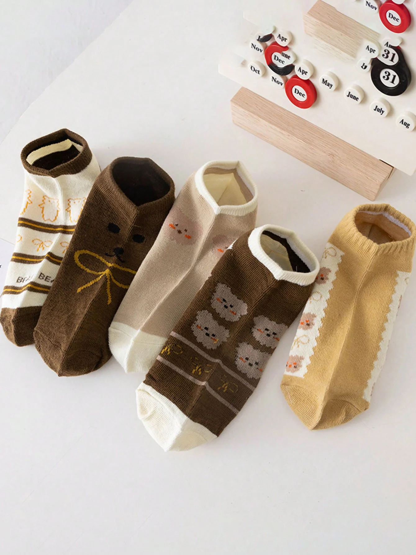 ST1131 – 5 Pares De Calcetines Cortos Para Mujer Con Diseño De Oso