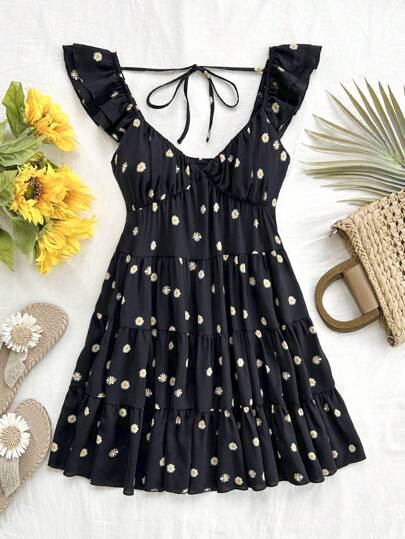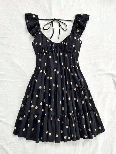 Detalles: Espalda al aire, Volante, Bajo con volante,