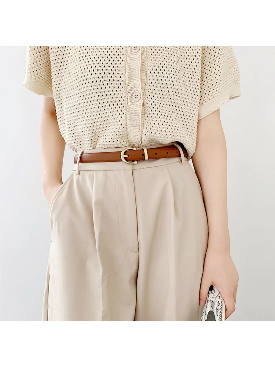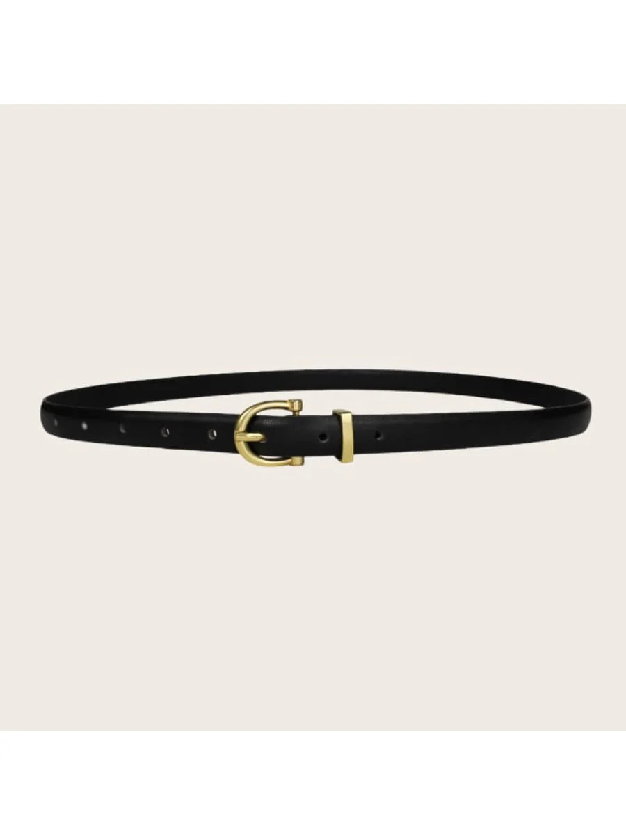 Sé el primero en valorar “sto-Cinturón Negro Simple Y Vintage Con Forma De Elipse Para Mujer Con Hebilla Dorada-negra, Delgado Cinturón Casual De Piel Sintética”