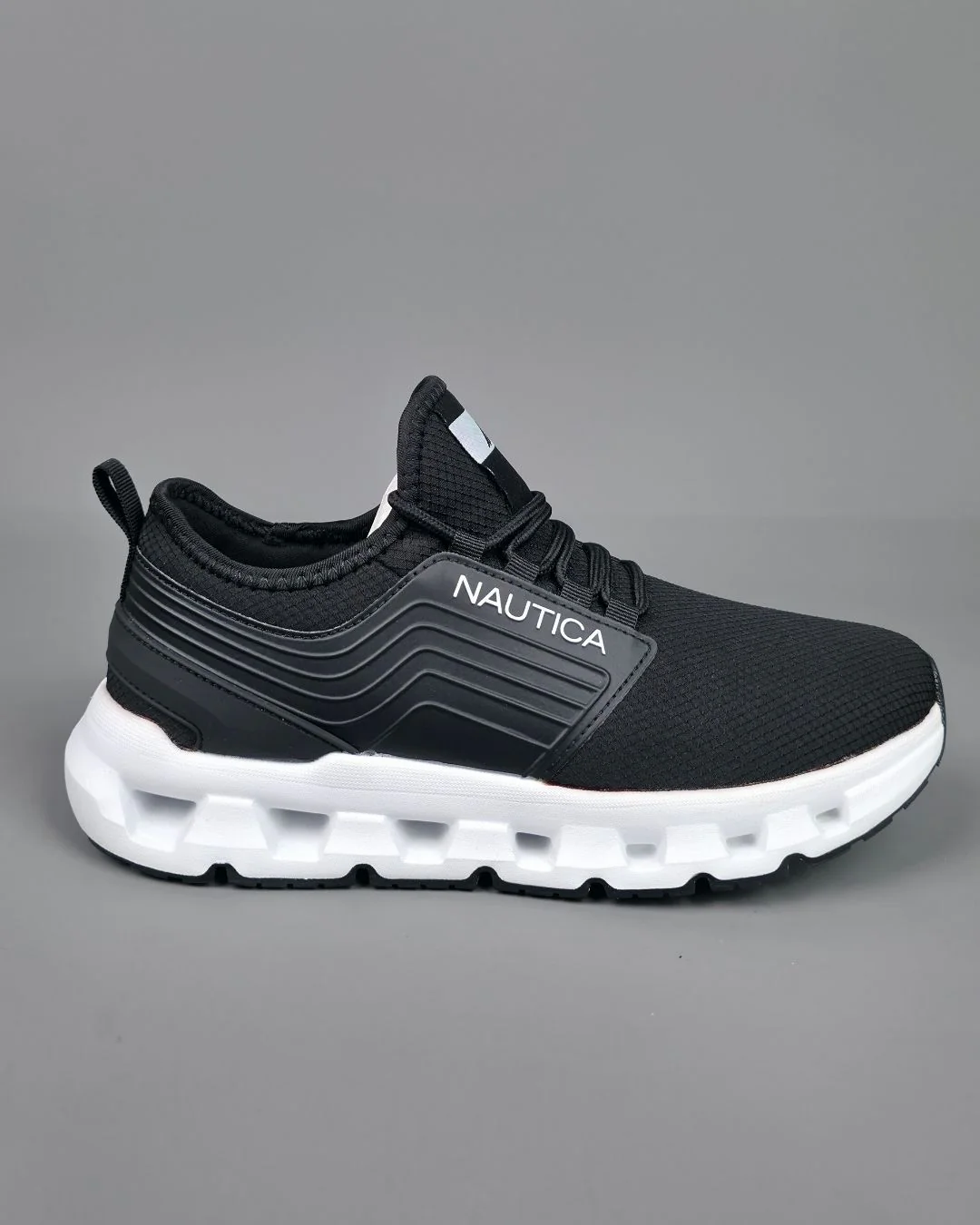 TENNIS NAUTICA DE HOMBRE NEGRAS CON SUELA BLANCA Y DETALLES EN BLANCO CON LETRA PEQUEÑA
