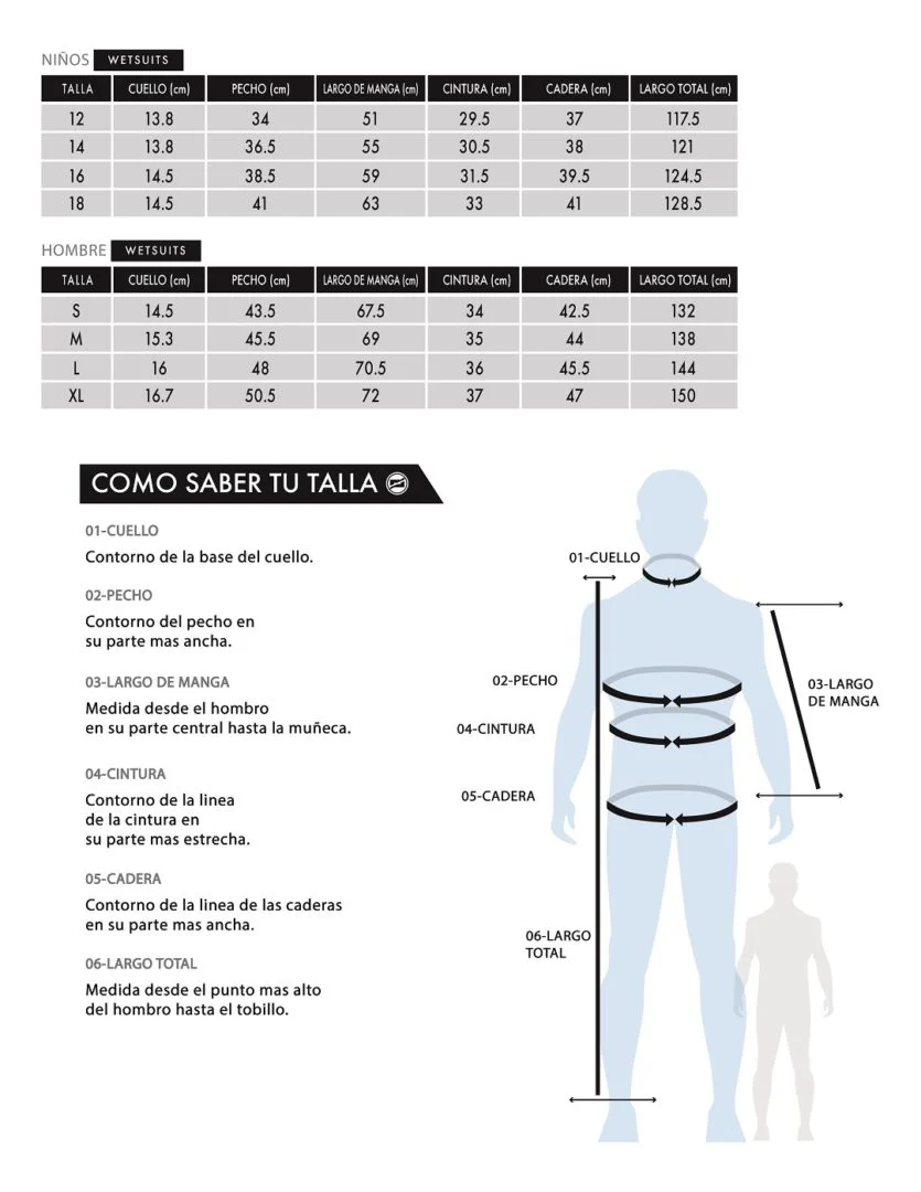 8) INNER RUBBER PRINT: Estampado de goma al interior de las muñecas y tobillos fijando el traje e impidiendo el ingreso del agua.