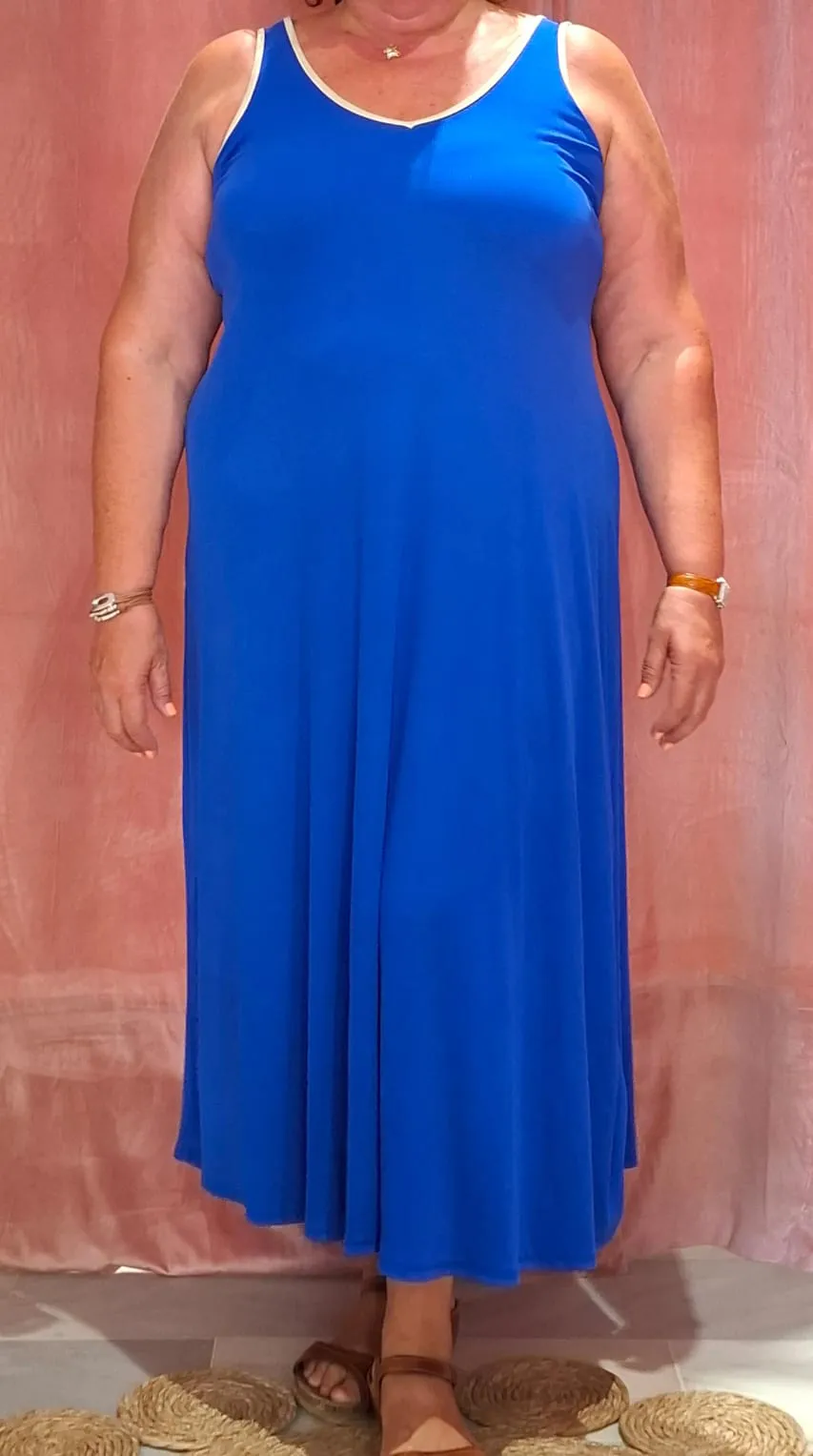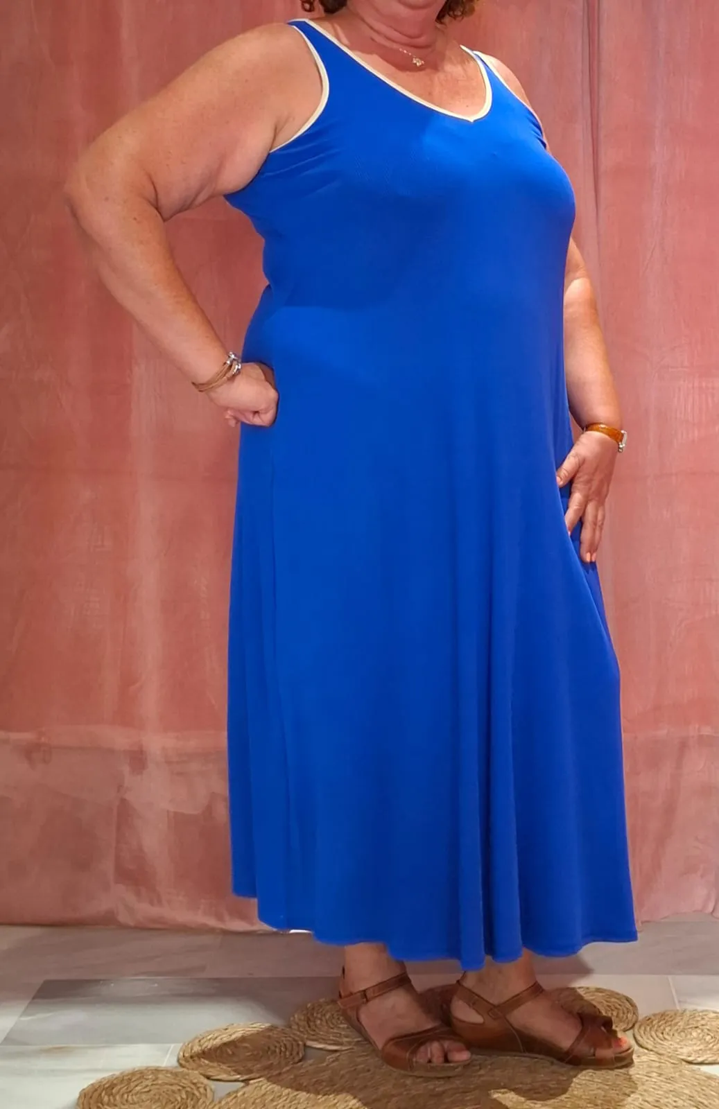 Sorprende con nuestro vestido largo de canale en color buganvilla, diseñado en talla curvy para un ajuste comodo y elegante.