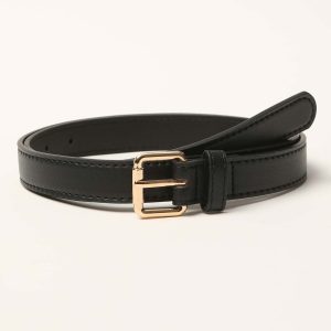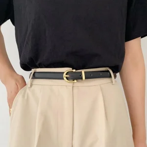 sto-Cinturón Negro Simple Y Vintage Con Forma De Elipse Para Mujer Con Hebilla Dorada-negra, Delgado Cinturón Casual De Piel Sintética