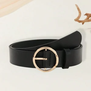ST419 Cinturón de cintura simple y versátil con hebilla de círculo geométrico para mujer, adecuado para vestidos o jeans, ideal para uso diario
