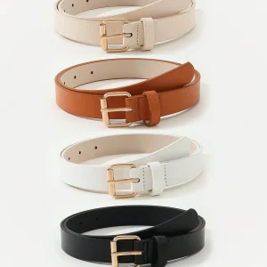 ST417 Conjunto de 4 piezas de cinturones cuadrados para mujer con hebilla, simples y versátiles para la vestimenta diaria, adecuados para vestidos y jeans