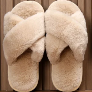 M519 – Pantuflas de interior para mujer con tiras cruzadas mullidas para dormitorio para invitados
