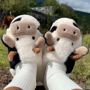M525 – Mujer Zapatillas de peluche multicolor con diseño de vaca