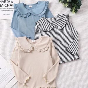 1428 – Vintaside Kids Conjunto De 3 Camisetas De Cuello Con Volantes Relajantes Y Cómodas Para Niñas Pequeñas