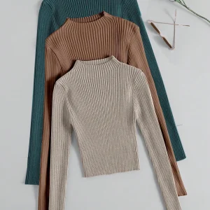 ST925 Essnce 3 piezas Jersey tejido de canalé con cuello falso