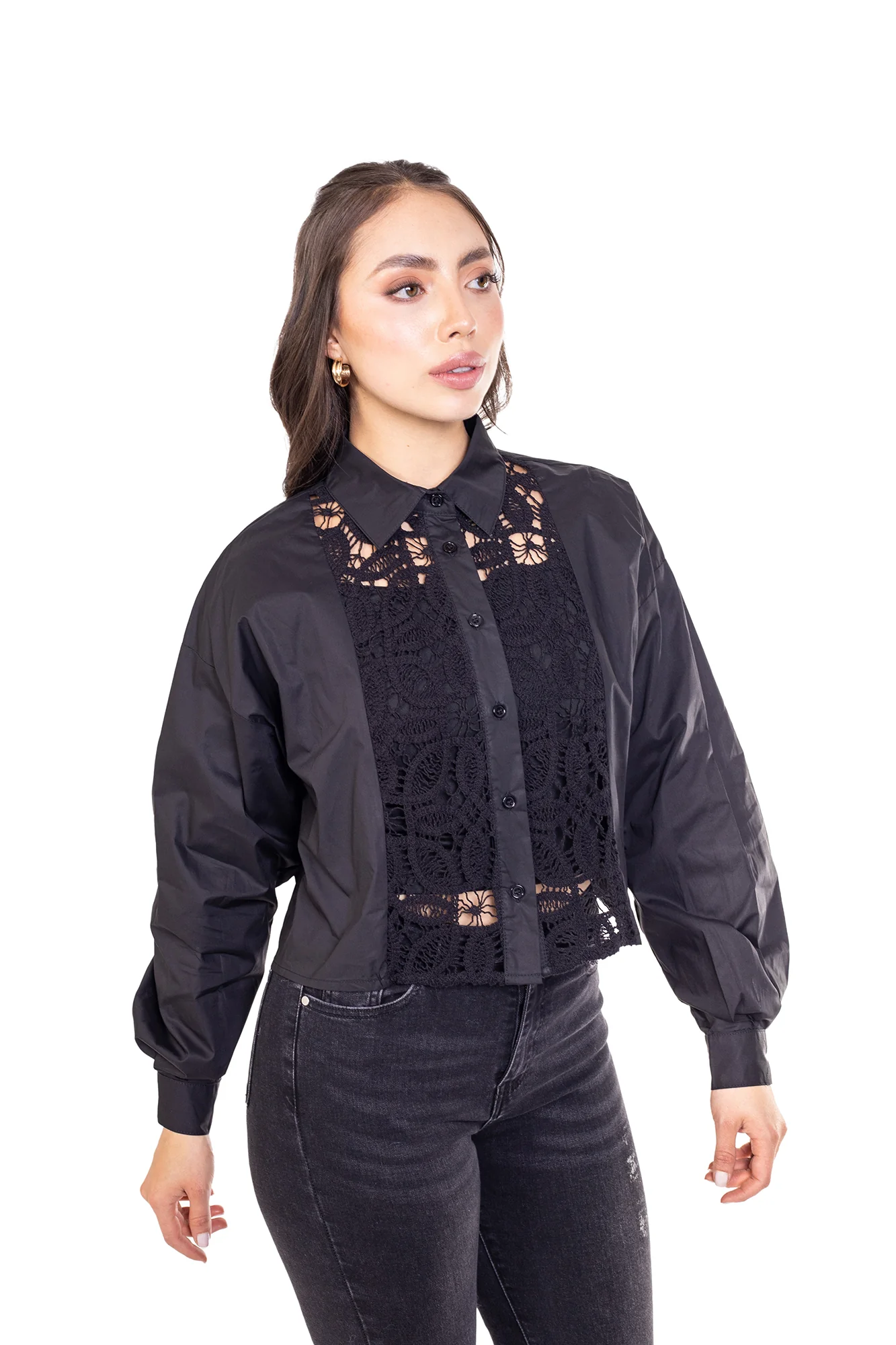 Camiseta en satín, silueta SEMI AJUSTADA, con manga larga, confeccionado en poliéster