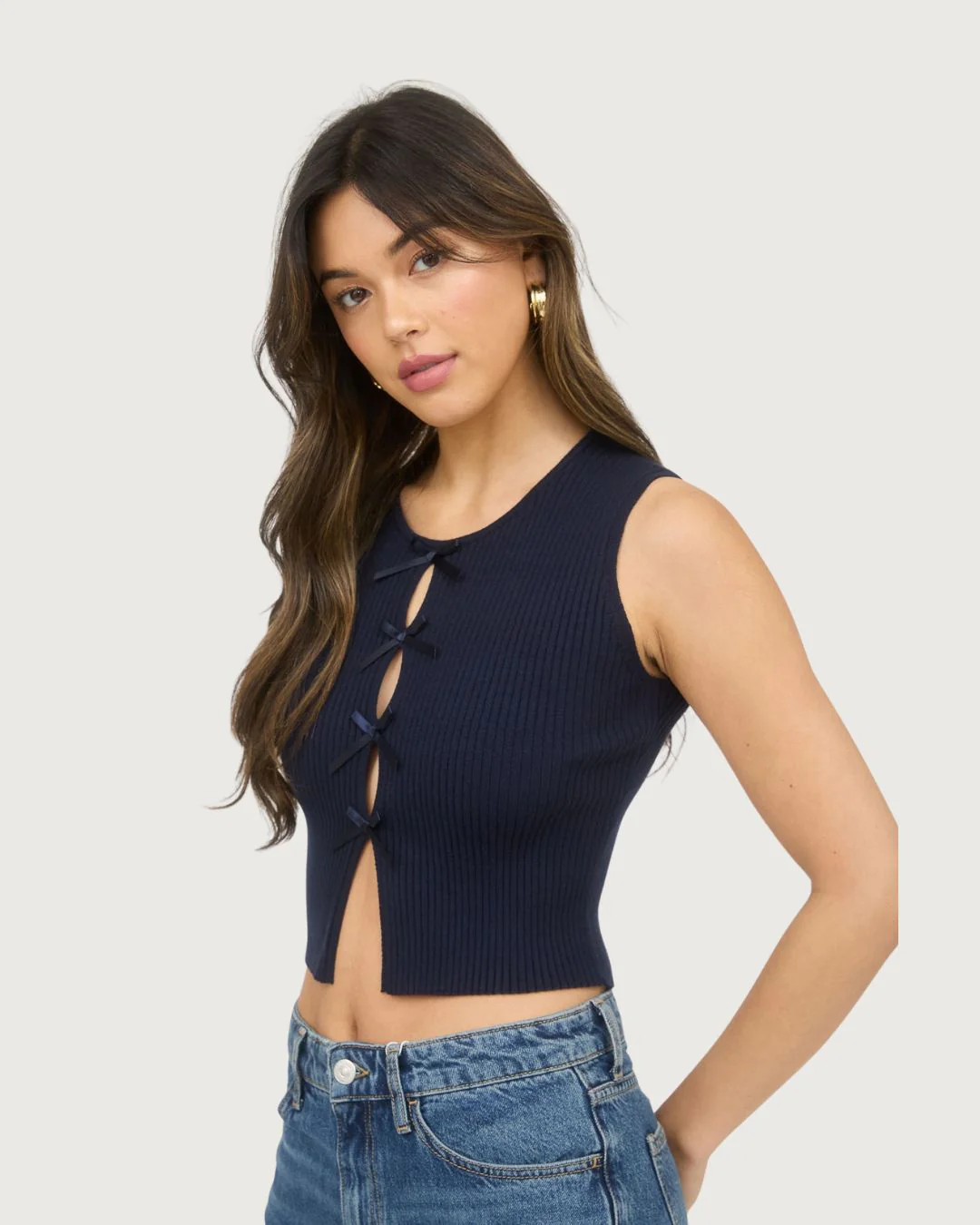 BLUSA MINE DE MUJER AZUL OSCURO CON DETALLE DE LAZOS 52% VISCOSA 29 %POLIÉSTER 19% NAILÓN