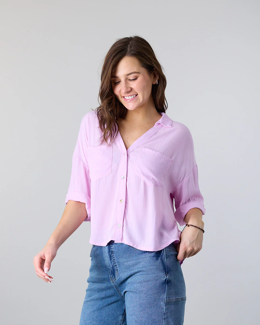Blusa Cuello camisero, dos bolsillos, calce cómodo y estilo atemporal. Está confeccionado con 100% Viscosa