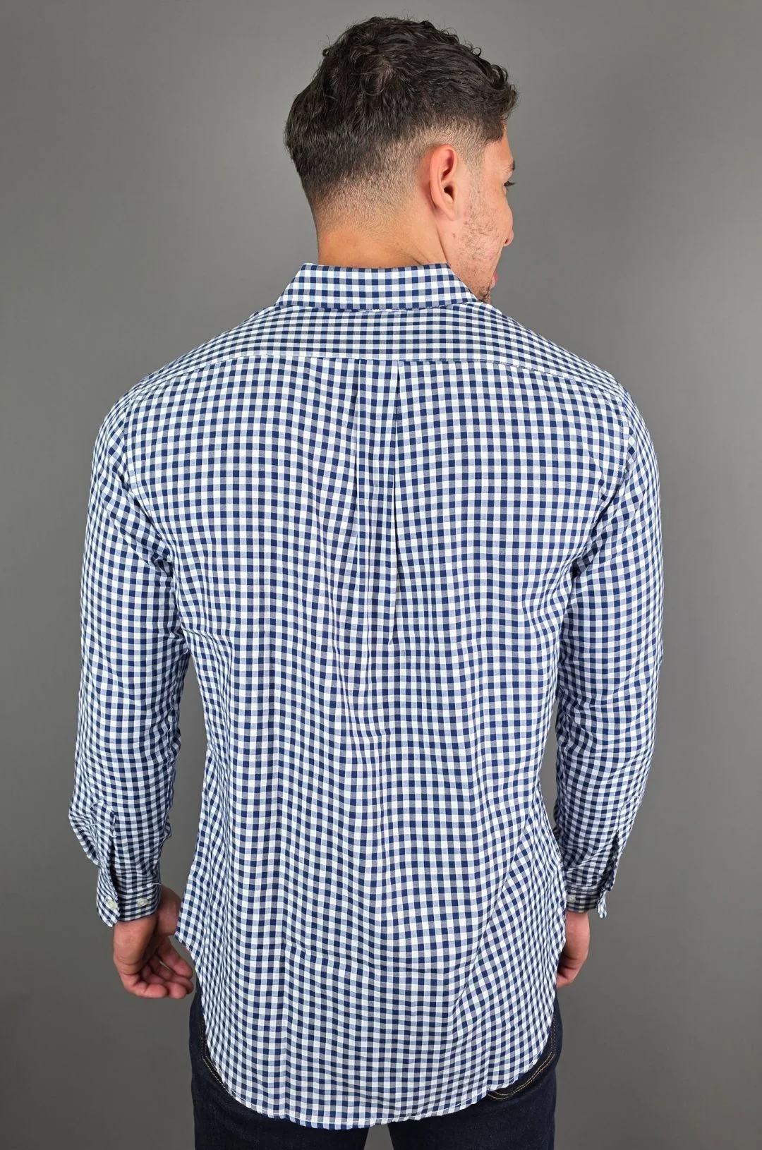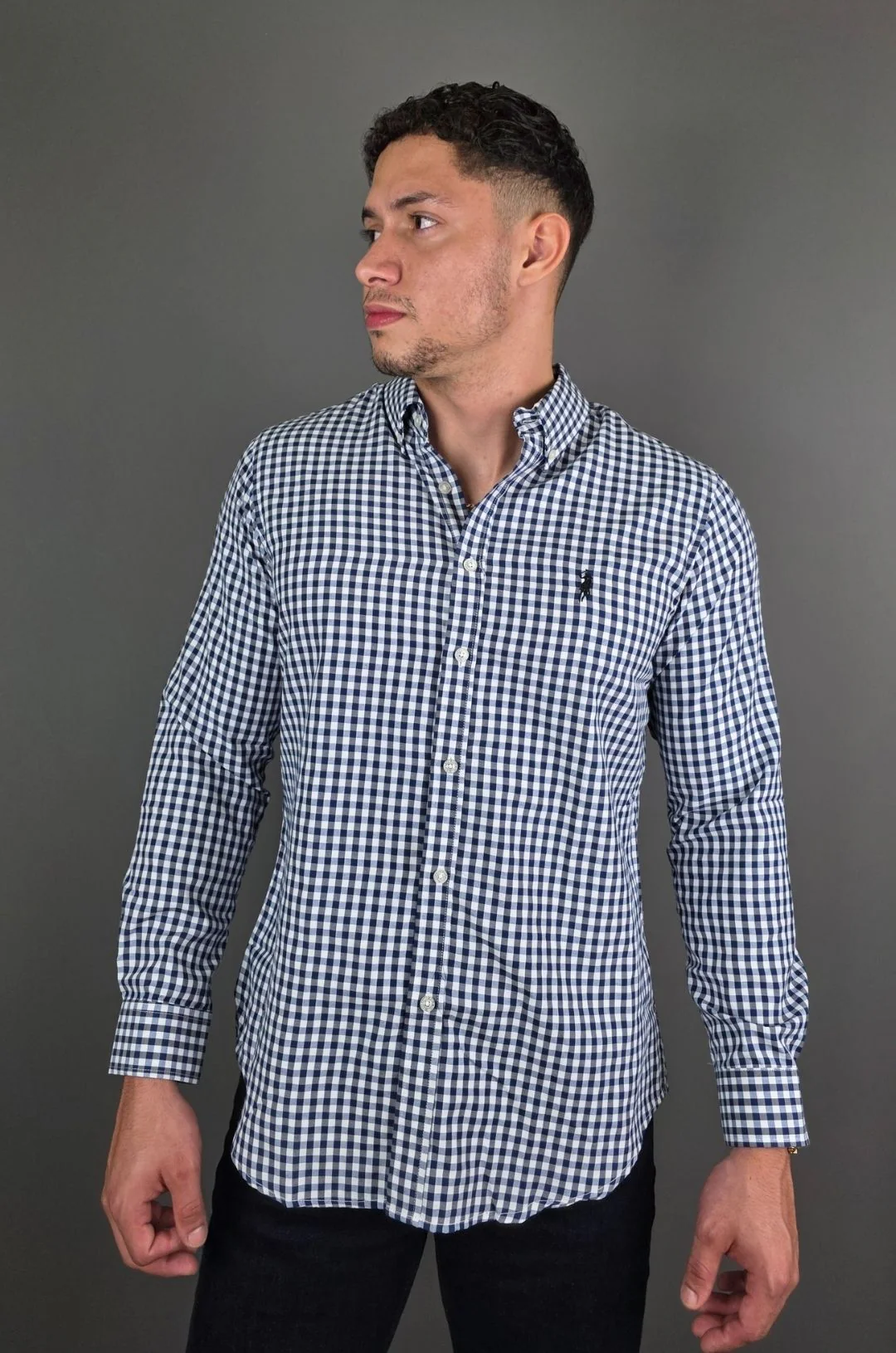 CAMISA CAMBRIDGE POLO AZUL OSCURO DE CUADROS MANGA LARGA 55%POLIÉSTER 45%ALGODÓN