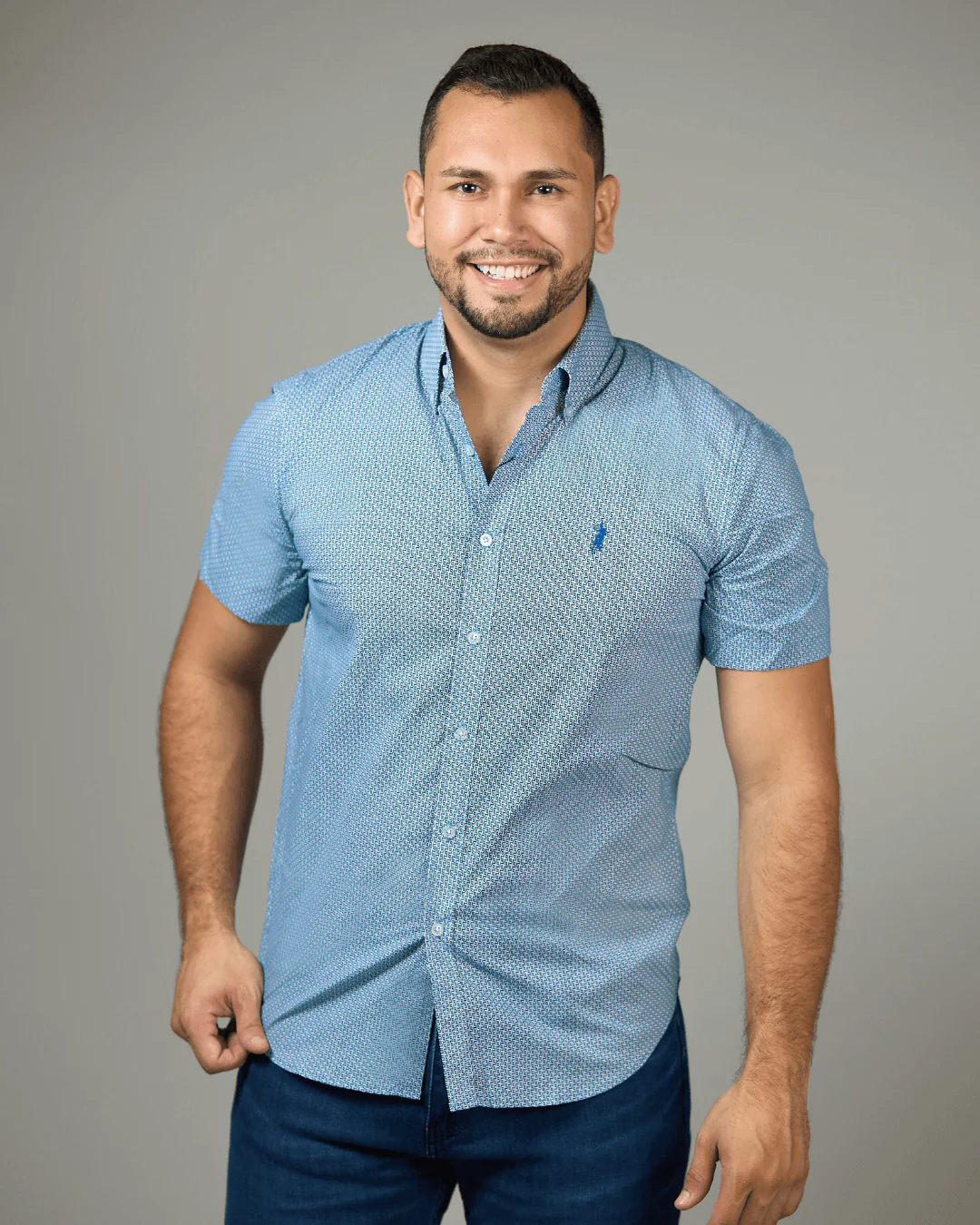 CAMISA CAMBRIDGE POLO AZUL CON ESTAMPADO