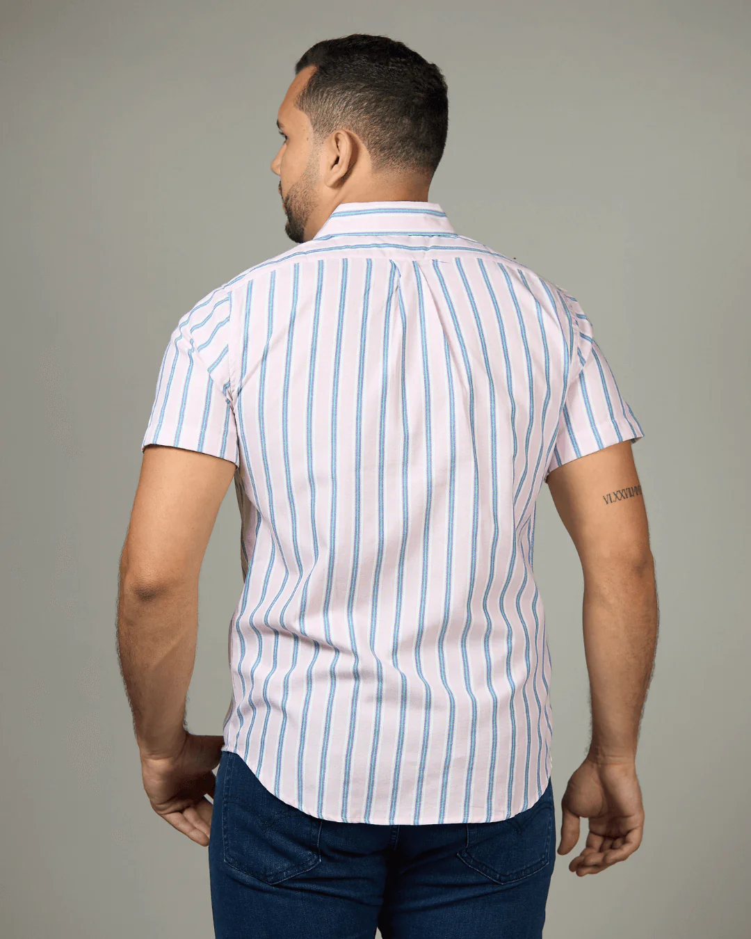 CAMISA CAMBRIDGE POLO ROSA CON RAYAS MANGA CORTA
