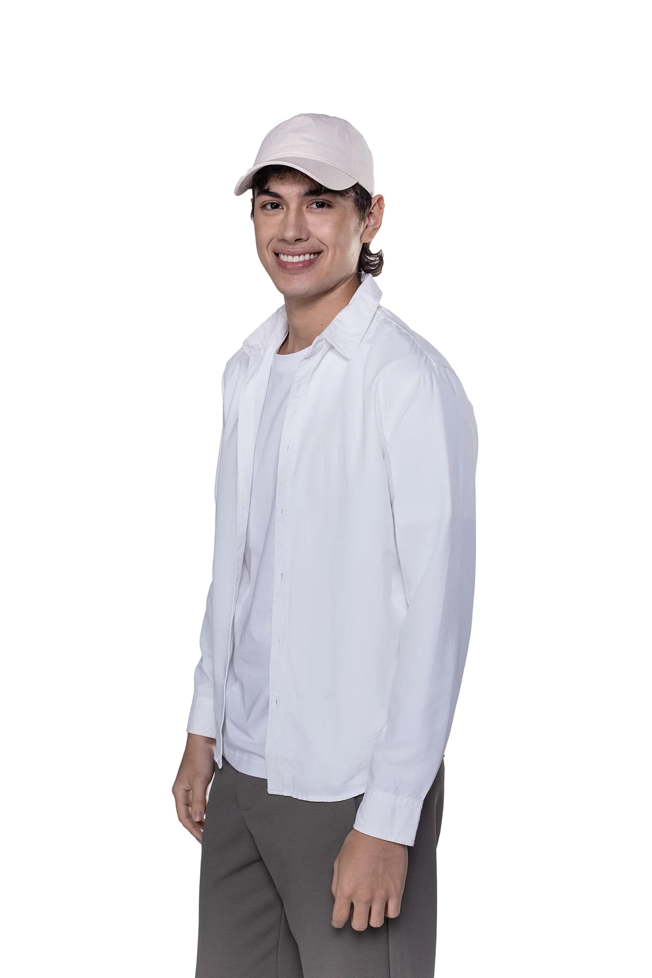 Camisa manga larga, SEMI AJUSTADA, con cierre de botón y . Tela rígida.