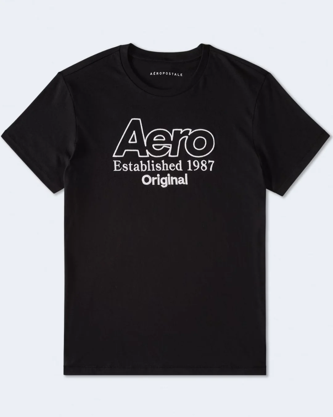 CAMISETA AEROPOSTALE DE CABALLERO NEGRA BORDADA 100% ALGODÓN