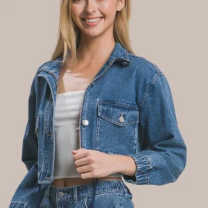 Chaqueta denim, silueta SEMI AJUSTADA, con cierre de botón, bolsillos laterales
